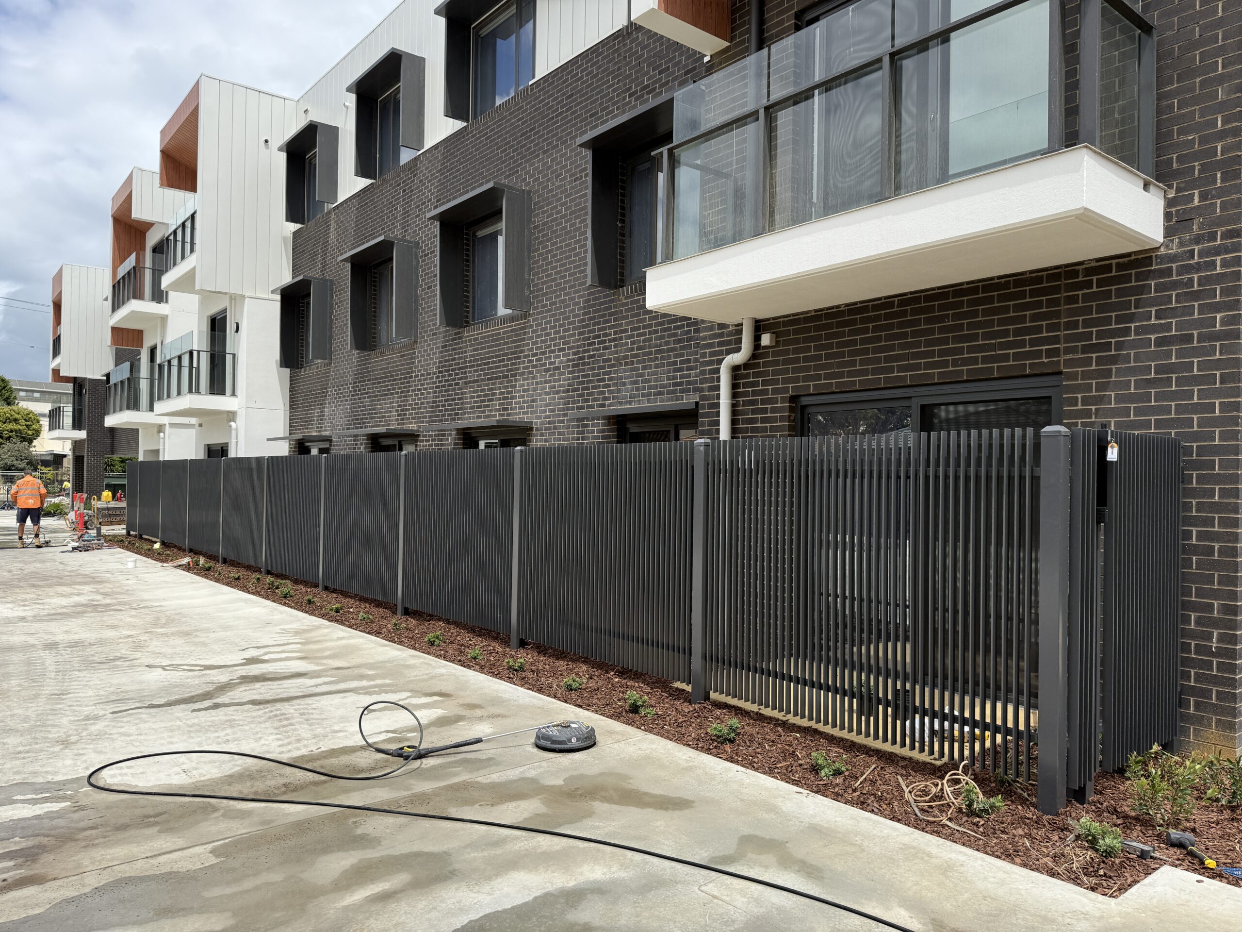 Modern vertical aluminium blade fencing providing a sleek architectural look while maintaining strong security and durability. Ideal for commercial developments, offices, and contemporary landscape projects.